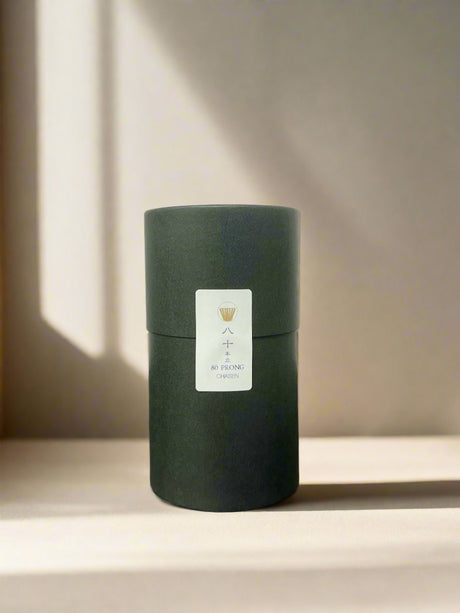 Notes: Most chasen are actually made in China now, with only a handful of craftsmen in Japan making only very high quality chasen. The higher the prong number, the easier it is to make froth but anything written "80" and higher is not actually an exact number. Use a lower numbered chasen to show off your whisking skill.