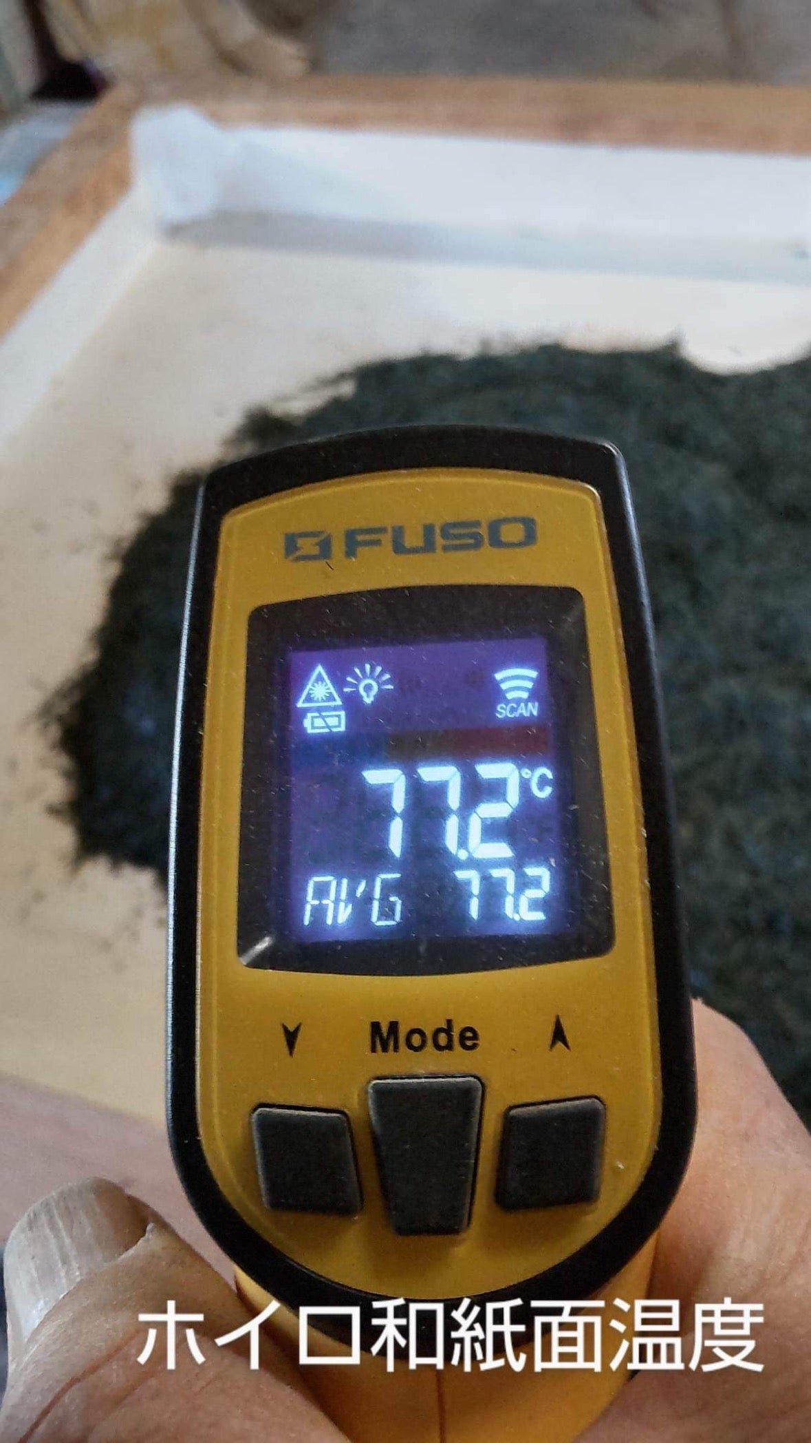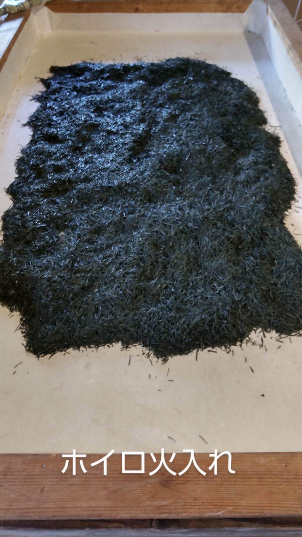 最後に、茶葉の仕上げは手作業で行われ、茶葉の粉や茎を取り除き、伝統的な和紙の焙煎台の上で約8分間(77℃、茶葉は約45℃に加熱)じっくりと焙煎します。焙煎台自体は備長炭で加熱され、火加減は藁灰を加えることで調整されます。
